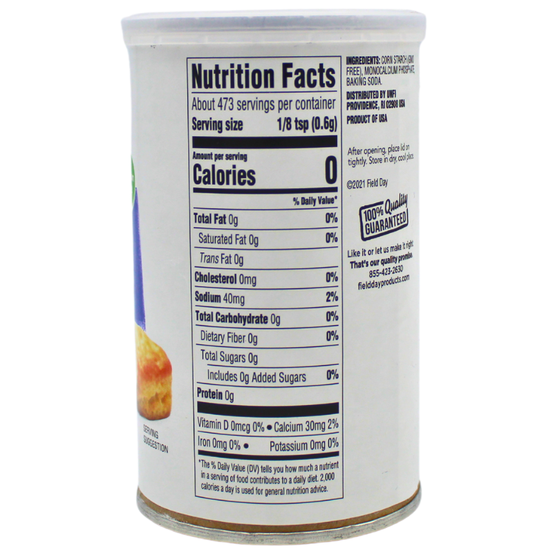 Ingredients: Corn starch (GMO free), monocalcium phosphate, baking soda.
