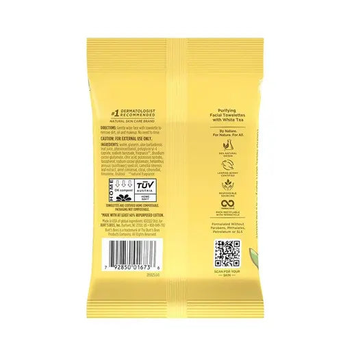 Burt's Bees Facial Towlettes Purifying White Tea 10ct