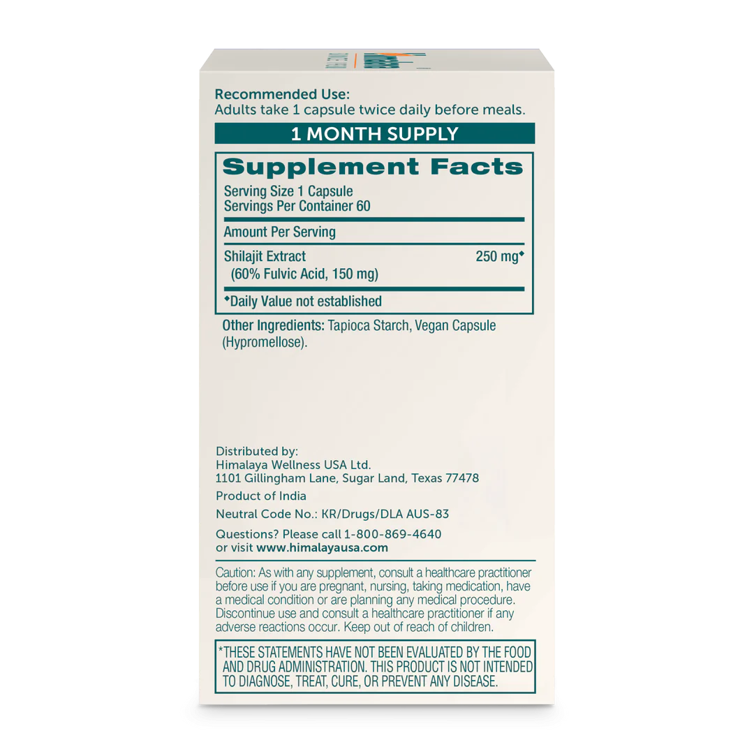 Himalayan Shilajit is a trusted daily supplement, traditionally used for energy support, providing 250 mg of Shilajit resin extract in 2 plant-based capsules per day. Shilajit resin has been used for thousands of years by the people of India and Asia to support energy, and daily wellness.*