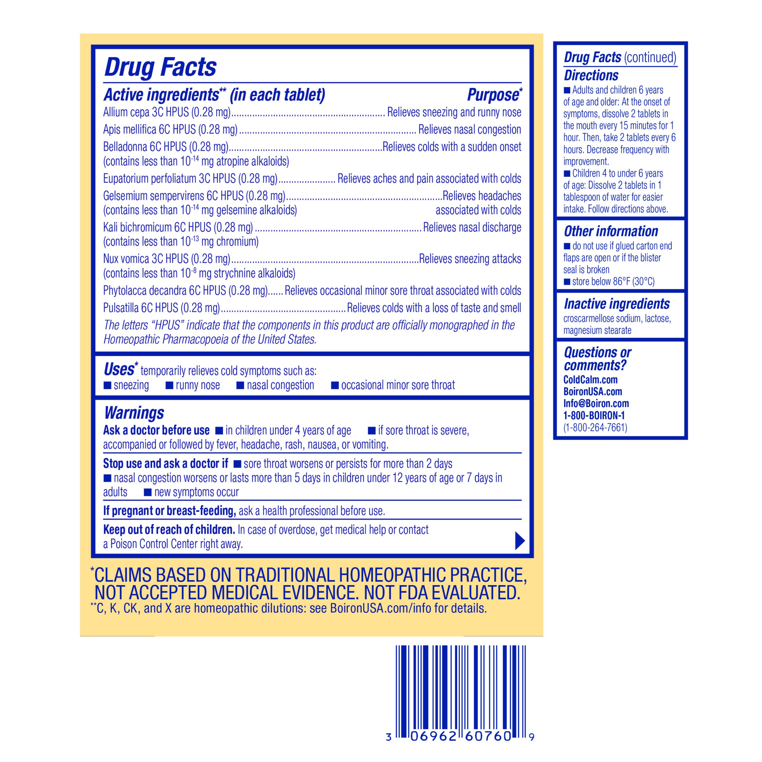 Boiron ColdCalm Tablets 60ct