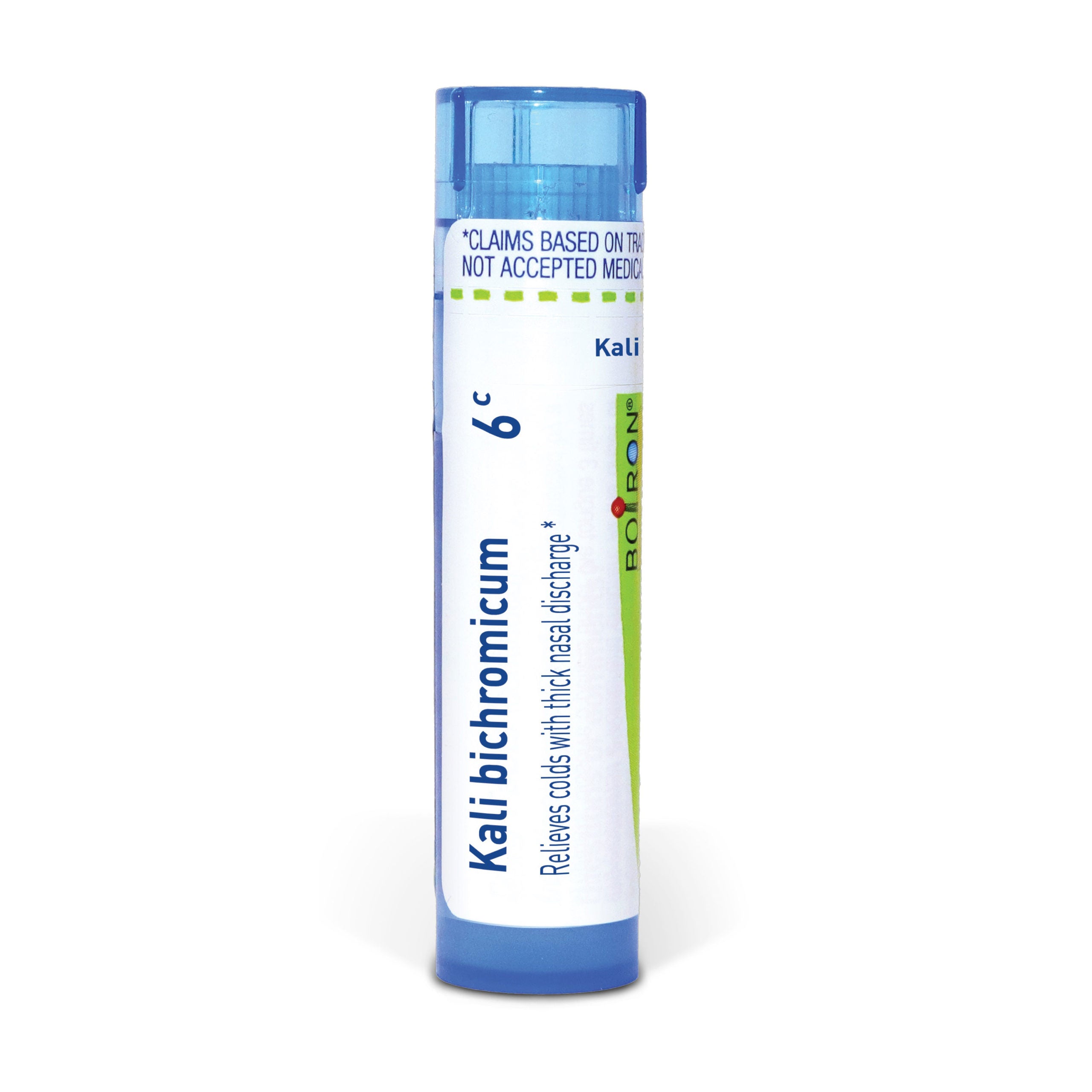 Customize your care with Boiron single medicines for highly targeted relief. Kali Bichromicum is a homeopathic medicine that relieves colds with thick nasal discharge.* The pellets melt in your mouth and can be taken on the go, no food or water needed.