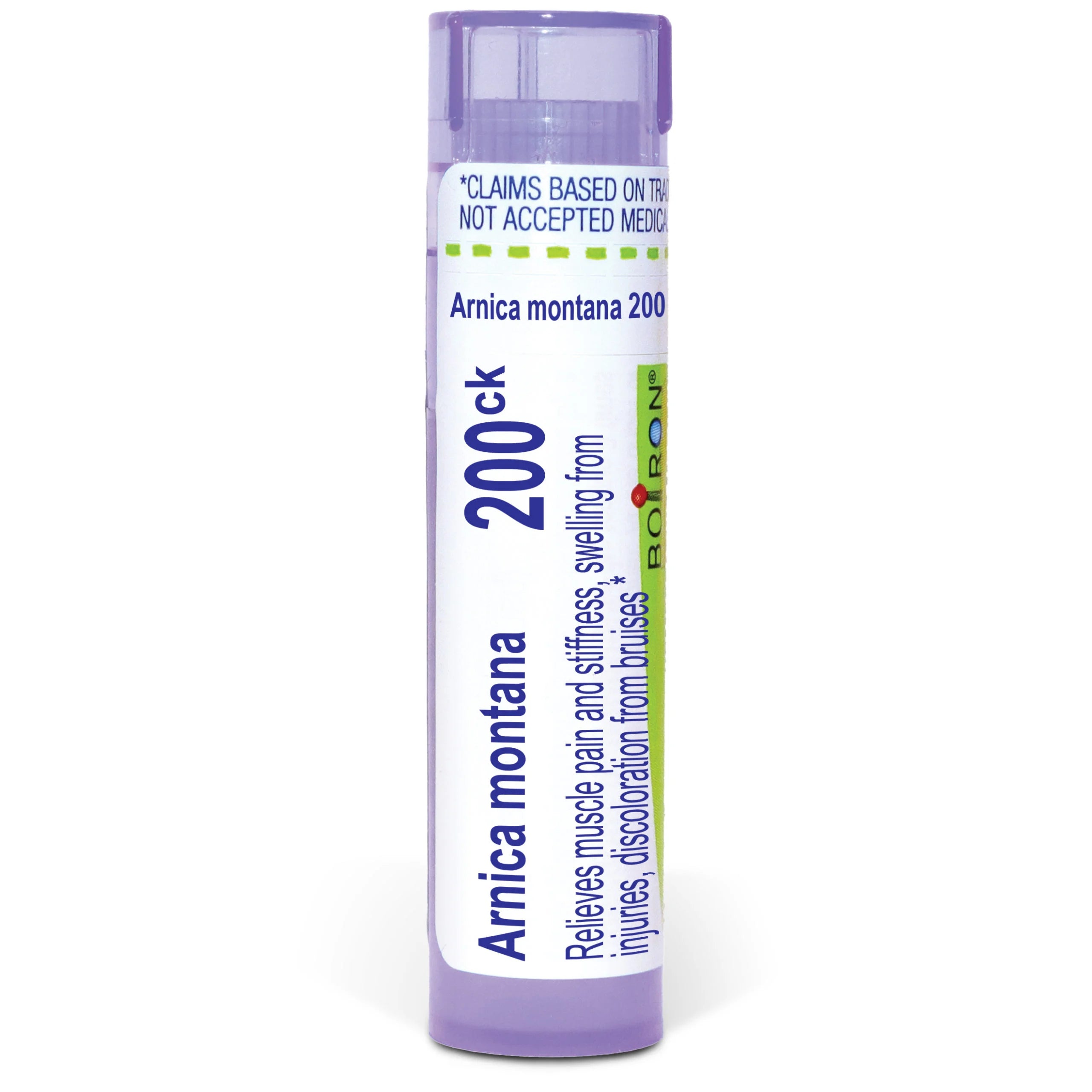 Boiron Arnica montana pellets provide targeted relief for minor muscle pain, stiffness, swelling from injuries, and bruises.* A homeopathic medicine, Arnica is non-drowsy and has no known interactions with other medications, herbs, or supplements. The meltaway pellets are easy to take without water, making them convenient to use anywhere.