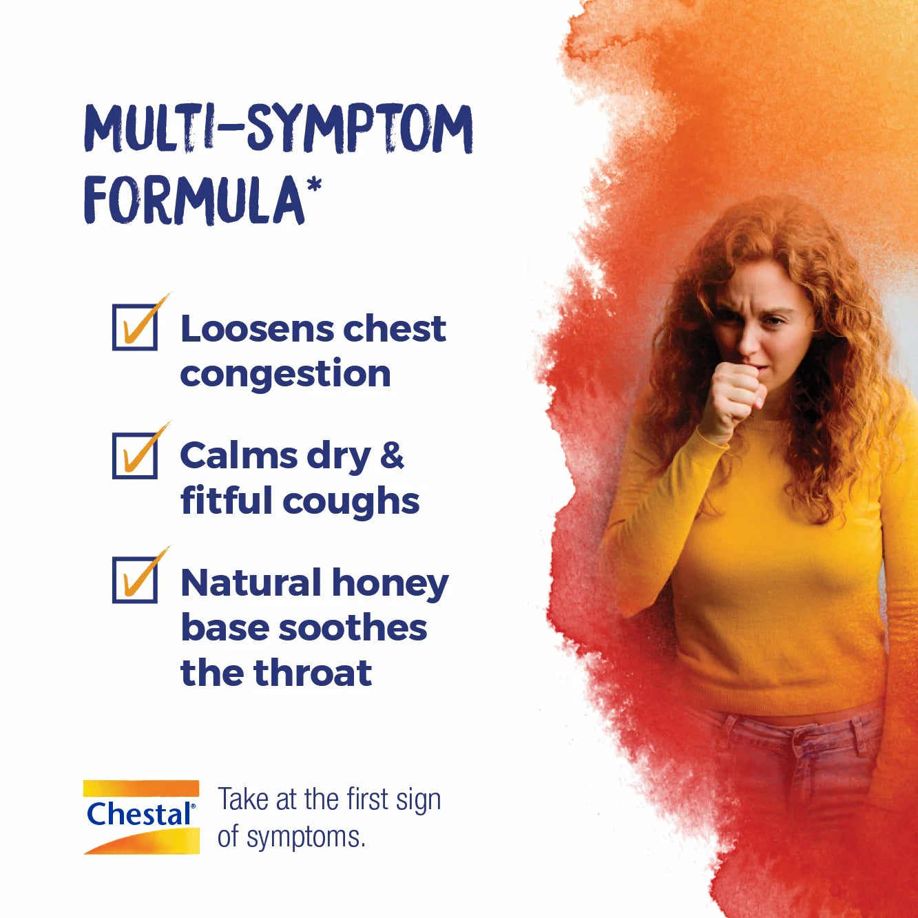 Boiron Chestal Honey combines homeopathic medicines that traditionally treat different types of coughs with the goodness of real honey to soothe the throat. This multi-symptom cough syrup loosens chest congestion with no worry of interaction with other medications.*