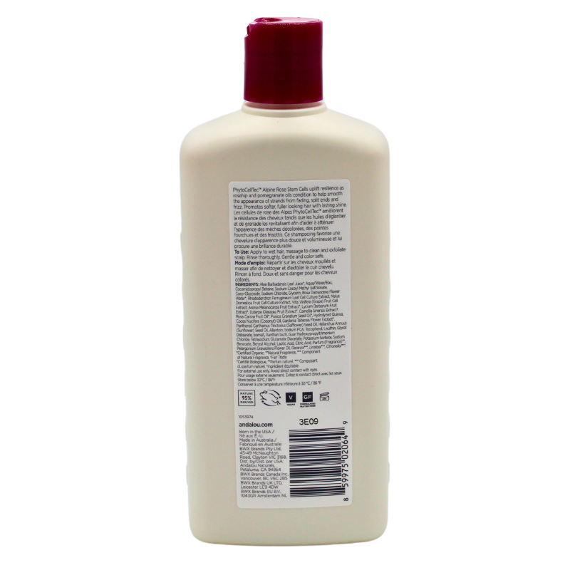 This 1000 Roses Complex Color Care Shampoo contains PhytoCellTec Alpine Rose Stem Cells to help strengthen hair, while Rosehip, Pomegranate and Coconut Oils work to smooth hair and protect it from Color-fade, frizz and split ends. This gentle, low-foaming shampoo is formulated to infuse moisture into each hair shaft as it cleanses, to leave hair looking softer and fuller with lasting shine.