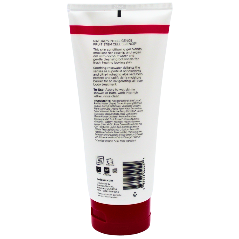 This skin conditioning gel blends emollient rich rosehip and argan oils with coconut water and gentle cleansing botanicals for fresh, healthy looking skin. Soothing rosewater delights the senses as superfruit antioxidants and ultra-hydrating aloe vera help protect and uplift skin's moisture barrier for an invigorating, all-over body treatment.