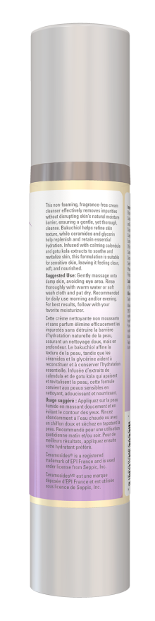 This non-foaming, fragrance-free cream cleanser effectively removes impurities without disrupting skin’s natural moisture barrier, ensuring a gentle, yet thorough, cleanse. Bakuchiol helps refine skin texture, while ceramides and glycerin help replenish and retain essential hydration. Infused with calming calendula and gotu kola extracts to soothe and revitalize skin, this formulation is suitable for sensitive skin, leaving it feeling clean, soft, and nourished.