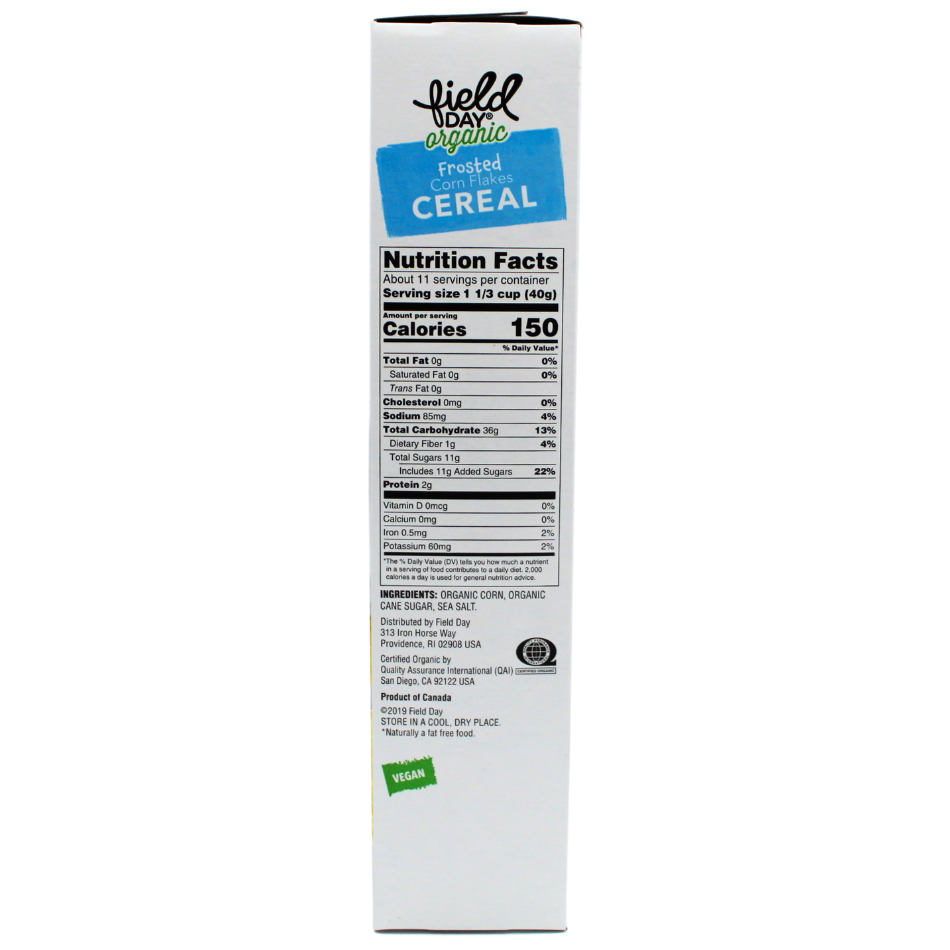 Field Day Organic Frosted Flakes are a light and crispy addition to your morning breakfast! Made without any artificial colors, flavors, or preservatives and also fat-free, this will wake you up the right way.