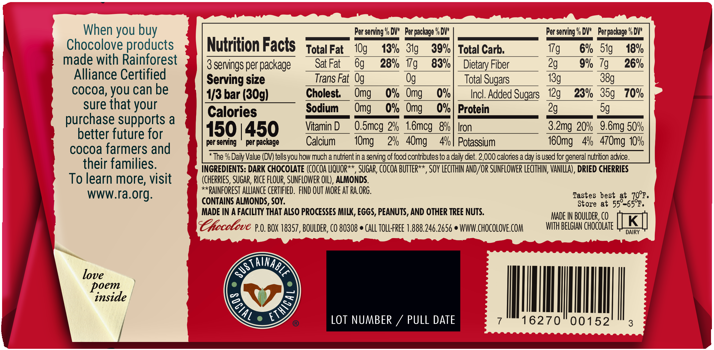 Chocolove Cherries & Almonds in Dark Chocolate 3.2oz *TPR*