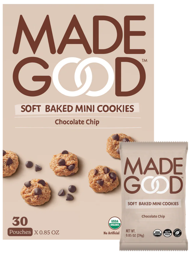Perfect for any occasion—whether on road trips, camping, or the first day of school—MadeGood Chocolate Chip Soft Baked Mini Cookies are a must-have treat that chocolate chip enthusiasts will adore!