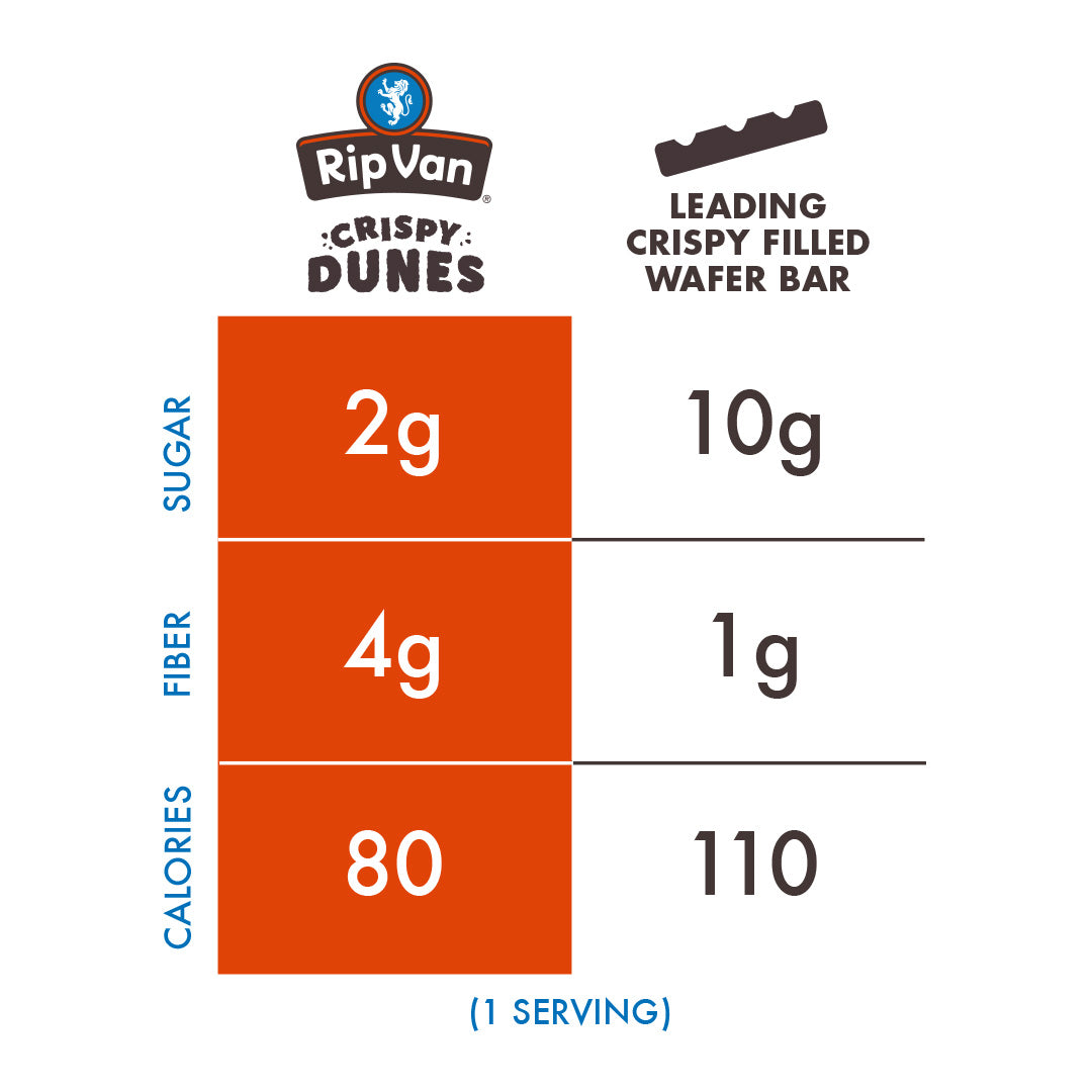 Rip Van Wafers believe that there should be a snack for every dietary need. Just because you’re vegan or on a low-sugar or low-carb diet doesn’t mean you should have to eat cardboard at snack time. With major brands having over 10g of sugar in their snacks, Rip Van Wafers knew they had our work cut out for them. These Wafers are no exception. These crunchy treats have less sugar, more fiber, and fewer calories, so you can snack well while living your best life.