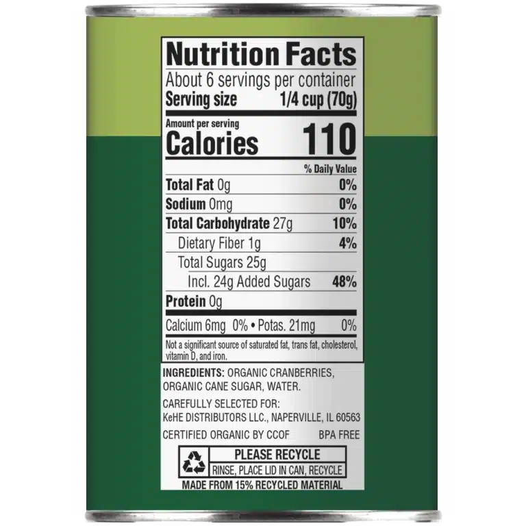 Ingredients: Organic Cranberries, Organic Cane Sugar, Water.