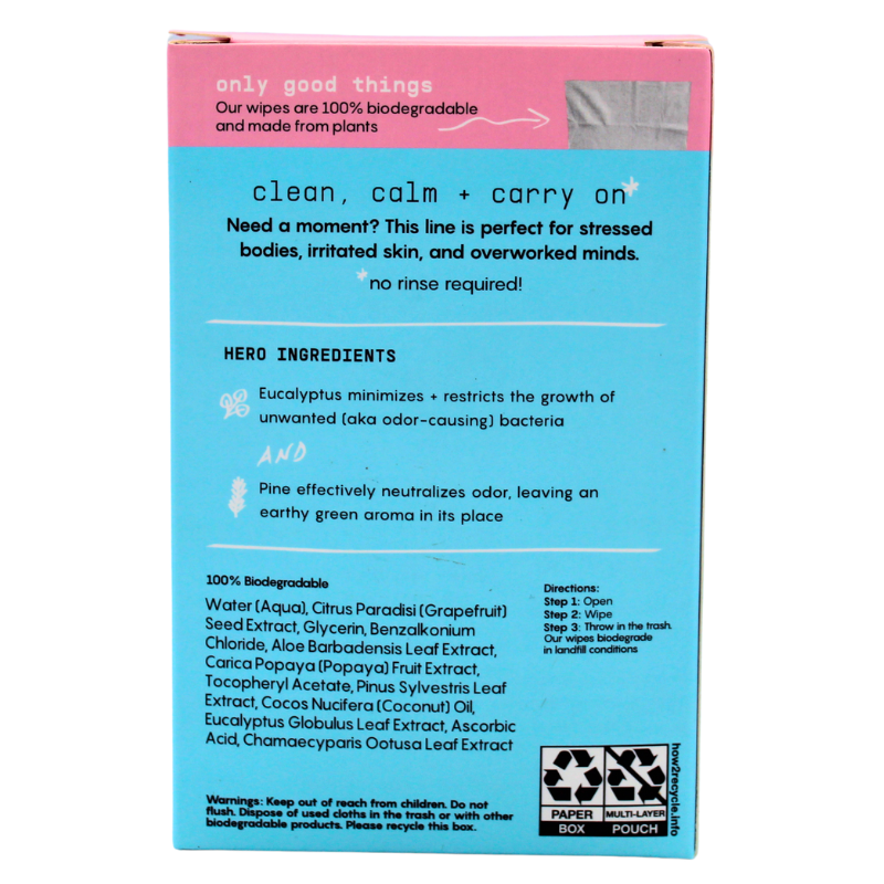 Calm your pits! When your underarms are overwhelmed with sweat and odor, reach for our calming deodorant wipe, which is packed with ingredients that gently eliminate stink and minimize bacteria while leaving skin feeling bright and renewed.