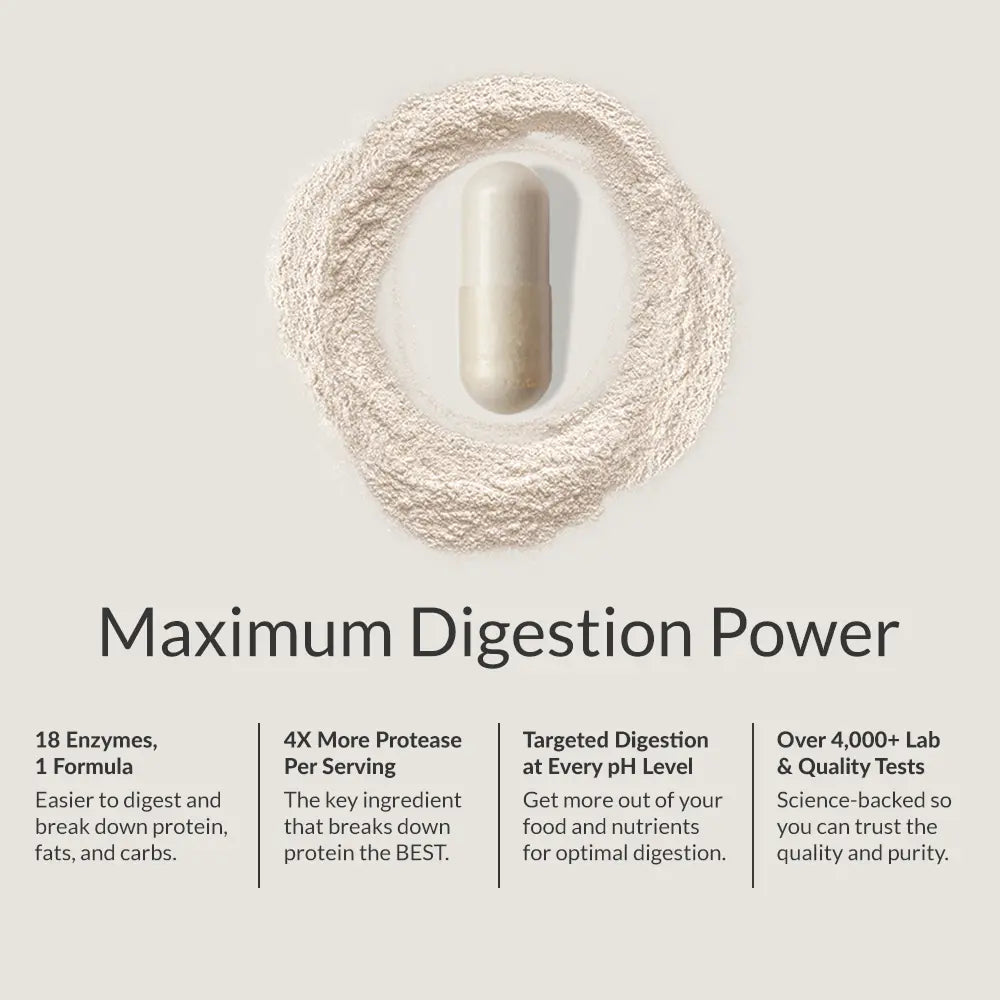 Taken with meals, MassZymes supports optimal digestion and nutrient absorption throughout the day, while consistent use helps reduce bloating and promotes gut health over time.*