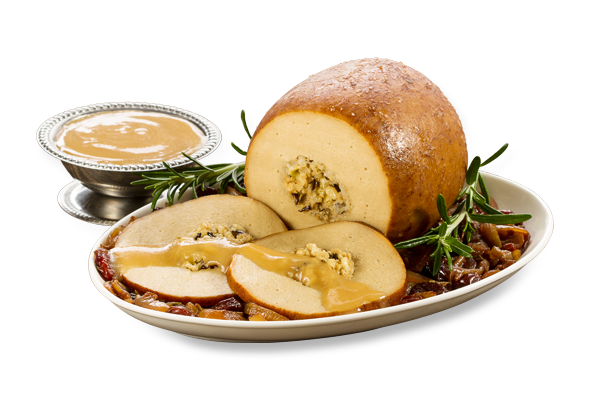 A savory blend of wheat and tofu, the Roast is filled with a flavorful wild rice and bread crumb stuffing, ready to be basted, roasted, carved and devoured by the whole posse. Compliment your roast with an included tub of savory gravy and go crazy.