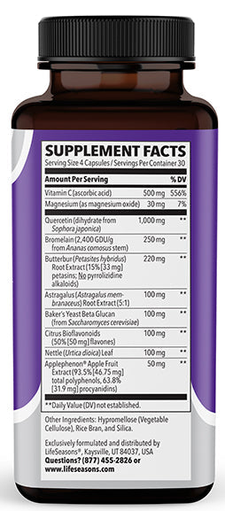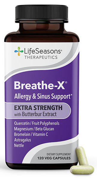 We created Breathe-X Extra Strength to provide even greater relief to those struggling with seasonal allergies and respiratory discomfort. By enhancing our proven formula with clinically effective doses of butterbur extract, beta glucan, and Applephenon® apple polyphenols, we’ve designed a comprehensive solution that addresses allergy symptoms and supports overall respiratory and immune health, without the side effects commonly associated with conventional allergy medications.*