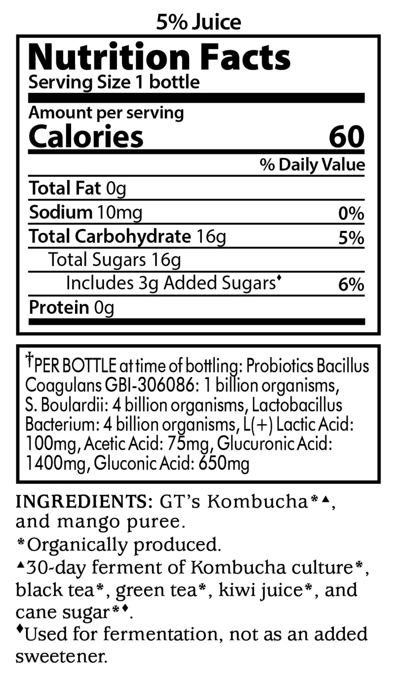 GT's Synergy Raw Kombucha Organic Mystic Mango with Deposit 16oz