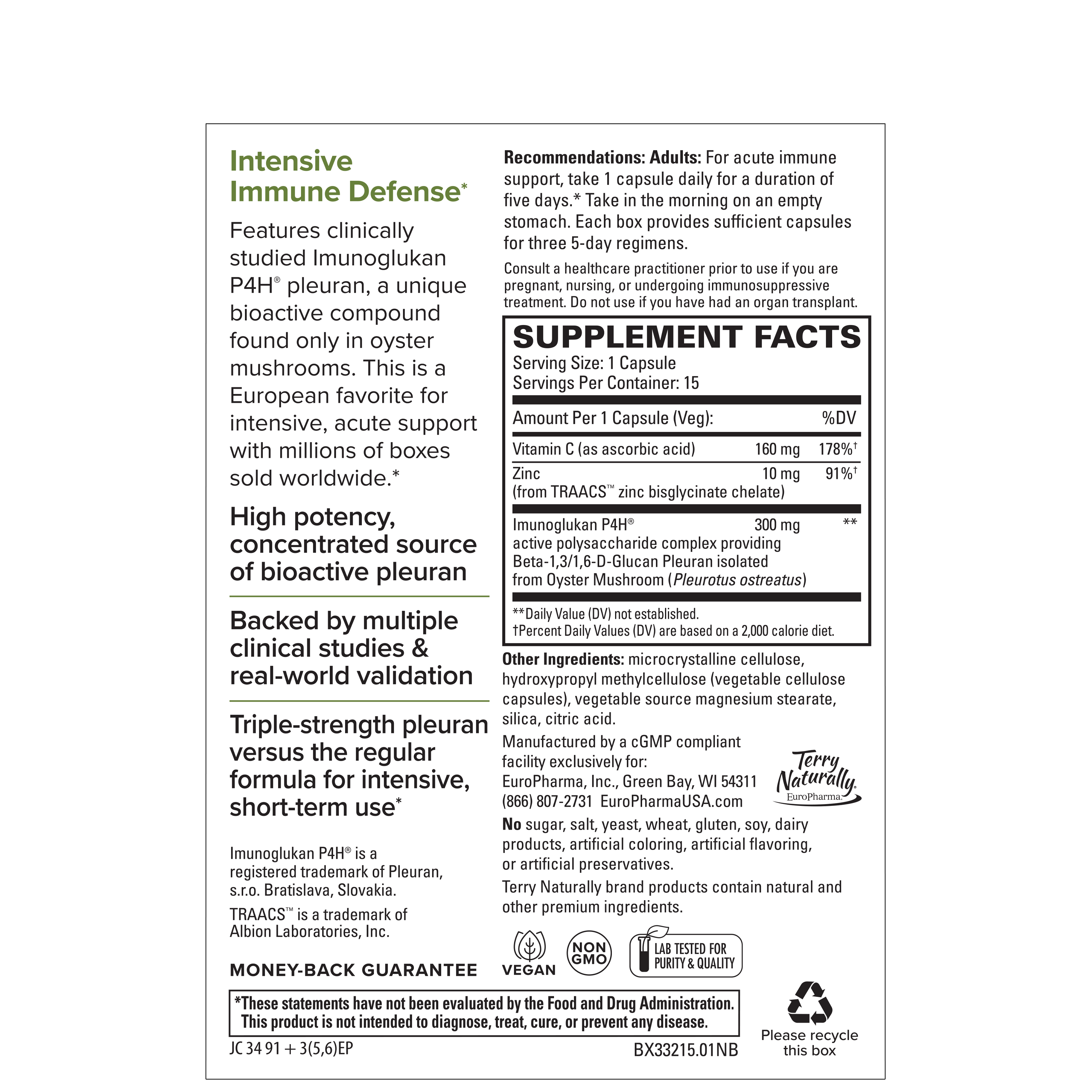 Features clinically studied Imunoglukan P4H® pleuran, a unique bioactive compound found only in oyster mushrooms. This is a European favorite for intensive, acute support with millions of boxes sold worldwide.*