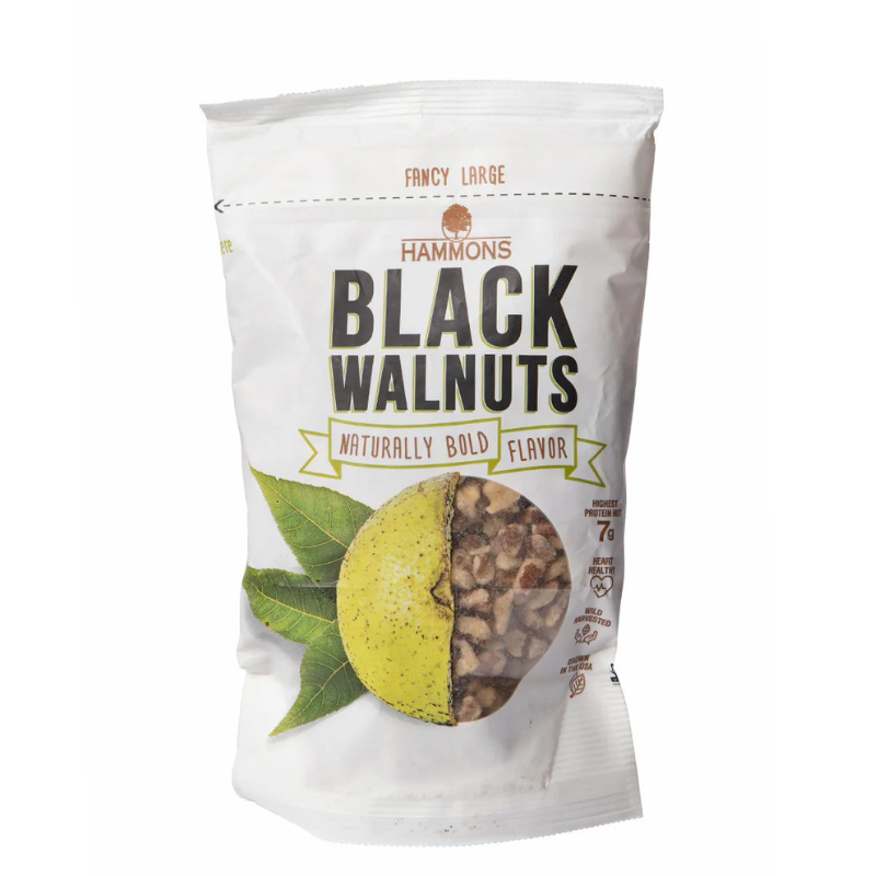 All Hammons Wild Black Walnuts are sustainably sourced from wild trees and ethically harvested from local foragers across the Midwest. The wild harvest variety has a rich, bold flavor that is craved by Black Walnut lovers. Fancy Large Black Walnuts, the largest and most popular size, is great for recipes that require a larger nut. Chop them up or leave as large pieces to enhance the flavor and add a crunchy texture to your favorite foods. From breads and cakes to salads and oatmeal, Black Walnuts can be used in a variety of recipes. They embody a unique and bold flavor that reflects their natural, untamed origins, making them a sought-after ingredient for gourmet chefs and home cooks alike. Wild Black Walnuts offer a distinctly unique flavor that can't be found anywhere else in the world!