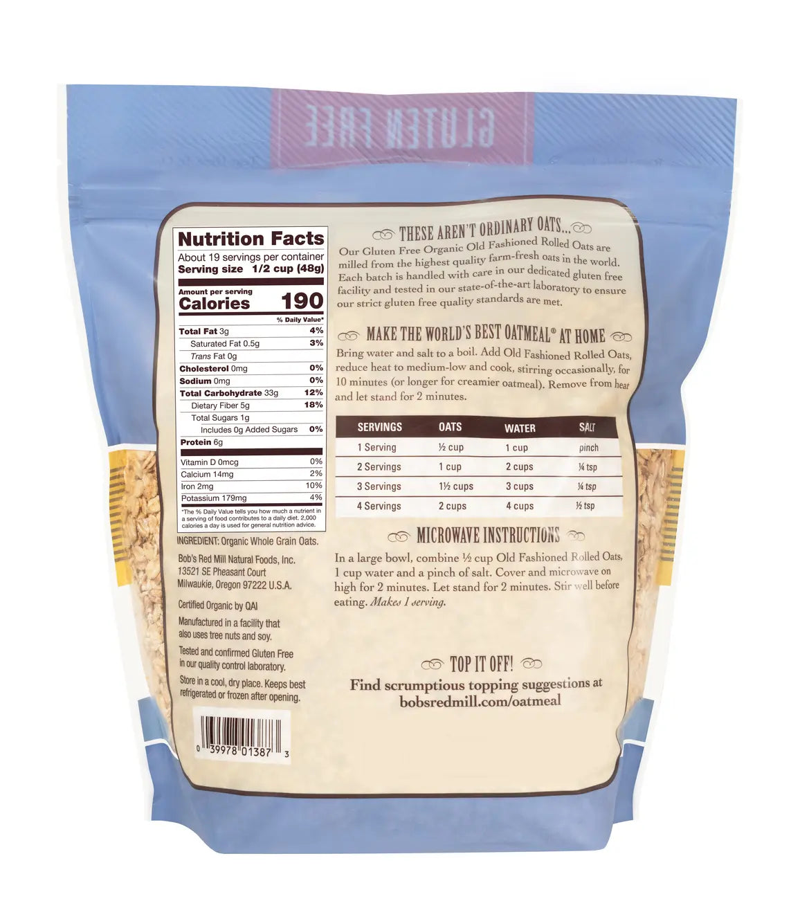 Bob's Red Mill Gluten Free Organic Old Fashioned Rolled Oats 32oz
