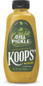 Ingredients: Vinegar, Water, Mustard Seed, Salt, Dehydrated Cucumber, Turmeric, Spice, Garlic Powder, Natural Flavor, Paprika.