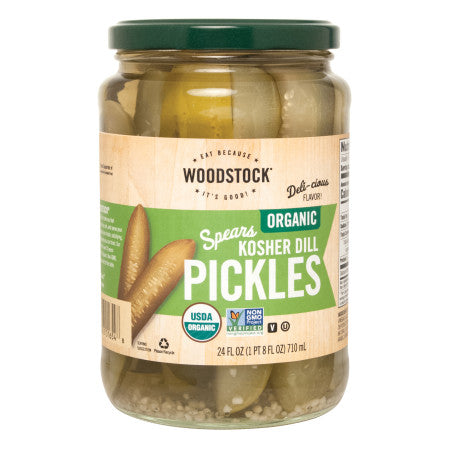 WOODSTOCK Organic Pickles start with fresh, crisp cucumbers, then we add just the right amount of spiced/seasoned brine, and voila, the perfect pickle! Pile’em on your sandwich, serve them as sides, or grab them for a snack.