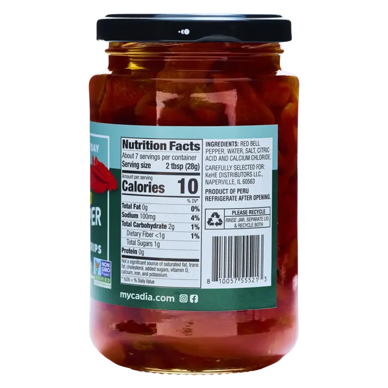 Ingredients: Red Bell Pepper, Water, Salt, Citric Acid, Calcium Chloride.