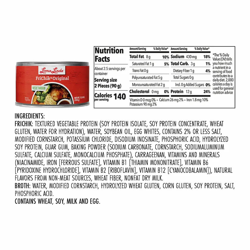 Versatile and easy to prepare, FriChik is perfect for sandwiches, wraps, casseroles, and comforting soups or stews. Add it to stir-fries, serve it with mashed potatoes and gravy, or toss it into a salad for extra plant-based protein. With its satisfying flavor and tender bite, FriChik Original is a pantry staple for vegetarians, vegans, and anyone seeking convenient, shelf-stable meat alternatives. Made with non-GMO ingredients and crafted for mealtime flexibility, FriChik helps make plant-based eating both simple and satisfying—any day of the week.
