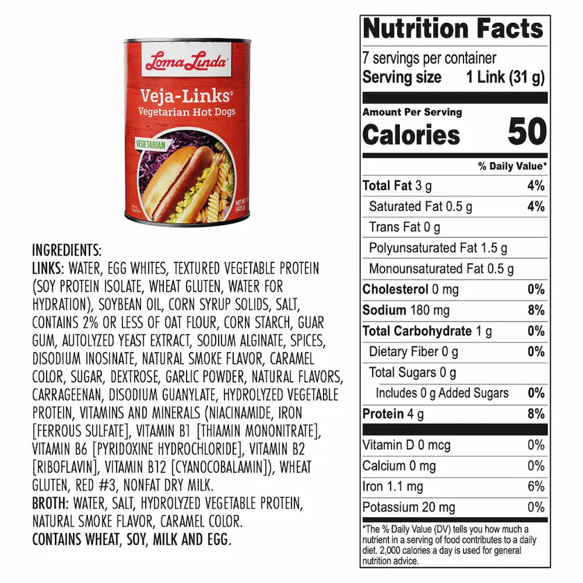 Loma Linda Veja-Links are a delicious and sustainable plant-based alternative to traditional hot dogs. Made with vegetarian protein, these versatile links offer all the flavor of a classic hot dog without the trans fats or cholesterol found in meat-based options. With 67% less fat than regular hot dogs and an excellent source of protein, Veja-Links are perfect for vegetarians, vegans, and flexitarians. Whether you grill them, simmer them in water, or add them to casseroles and baked beans, Veja-Links are easy to prepare and packed with taste.