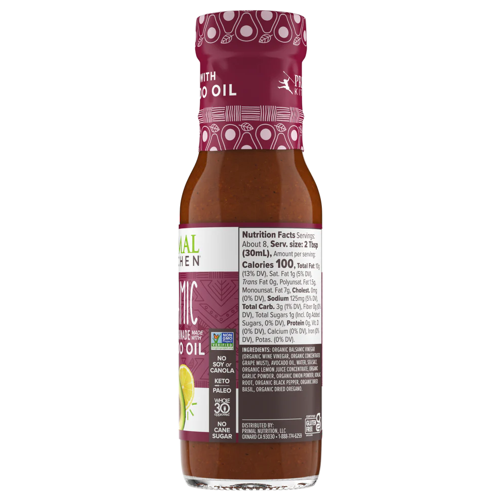 PRIMAL KITCHEN® Balsamic Vinaigrette and Marinade captures that classic sweet, tangy taste with the ingredients you love, like organic balsamic vinegar, avocado oil, and organic lemon juice.