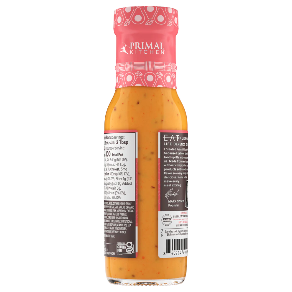 Ranch and buffalo lovers, this one's for you. Primal Kitchen Buffalo Ranch Dressing is made with avocado oil and high-quality ingredients with no dairy, sugar*, gluten, soy or canola in sight.