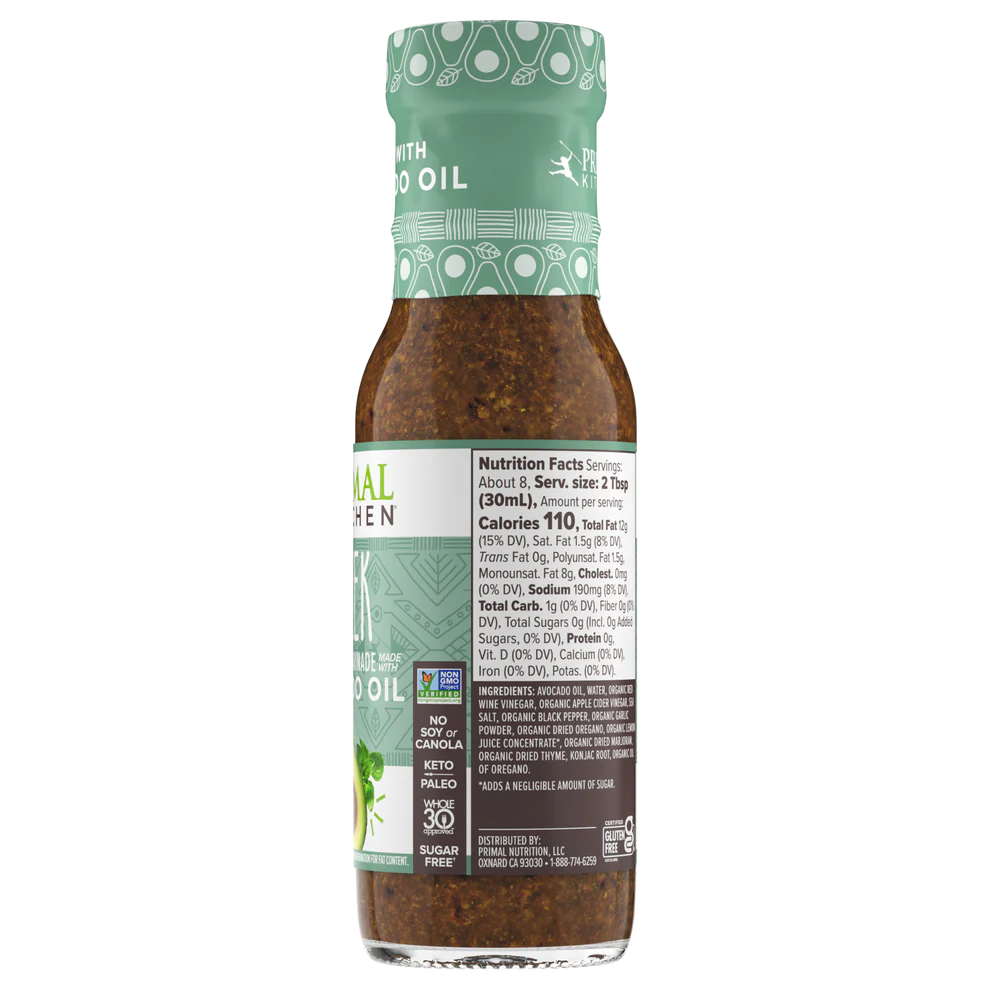 Taste the flavors of the Mediterranean in a bottle! PRIMAL KITCHEN® Greek Vinaigrette and Marinade gets a flavorful kick with herbs like organic dried oregano and organic black pepper.