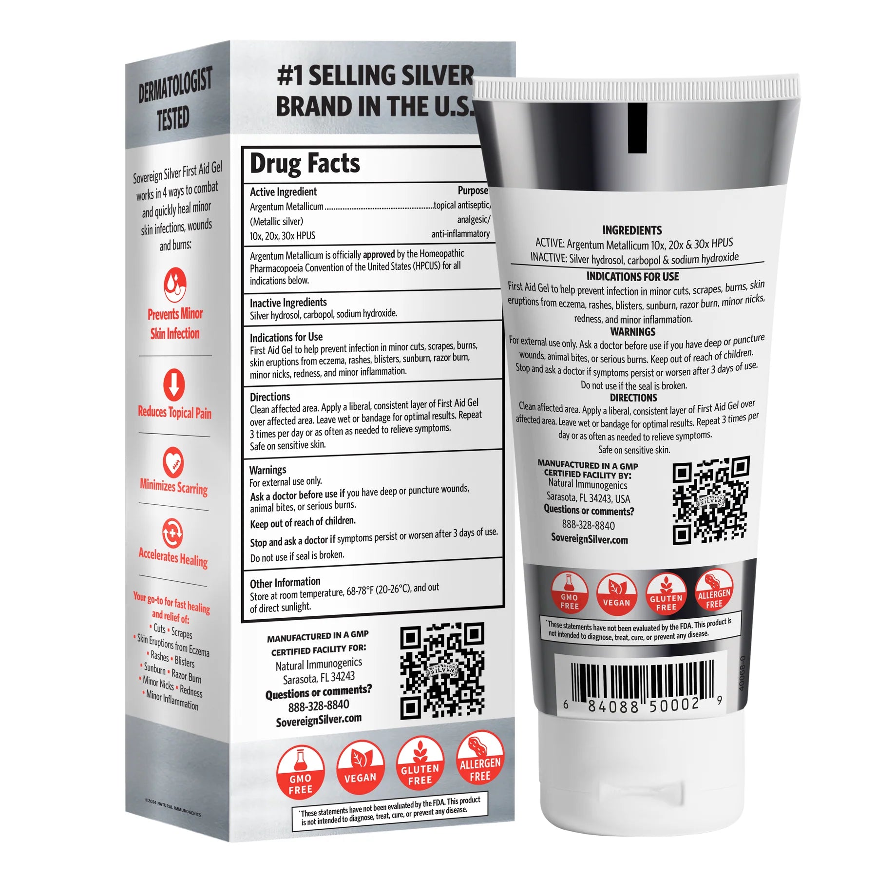 Sovereign Silver First Aid Gel (topical medicine) is the only product you need for minor cuts, scrapes, burns, bug bites and bruises. It reduces pain, calms skin inflammation, fights minor skin infections and also promotes the healing of the skin. Plus, it is clear, odorless, sting-free, non-sticky and won’t stain your clothes.