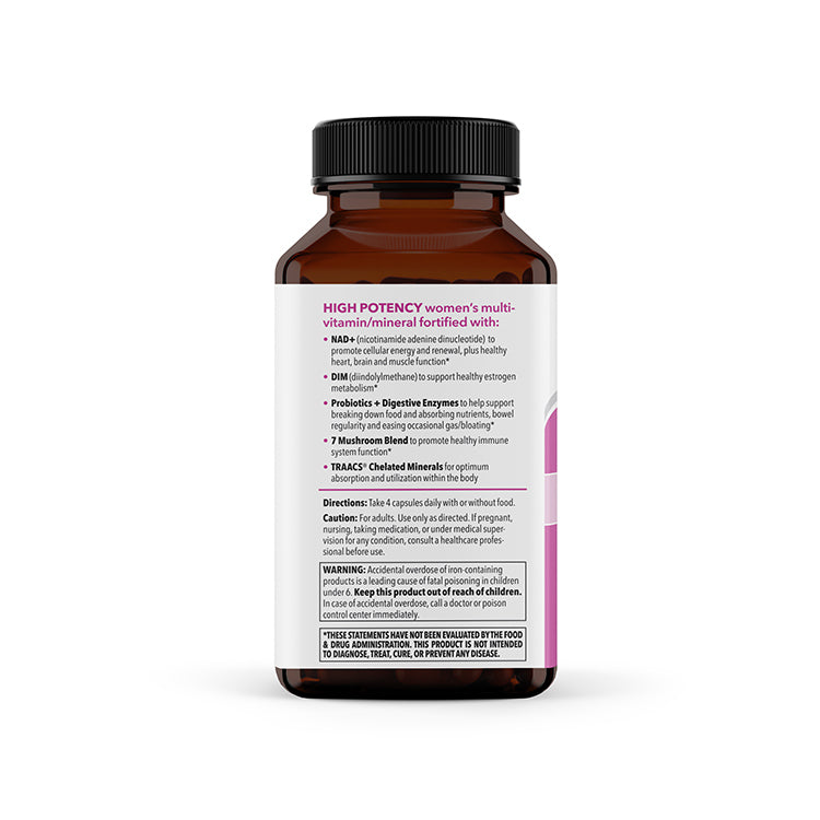 • Supports energy, hormonal balance, heart, bones, digestion, and immunity with 23 vitamins and minerals, enzymes, probiotics, mushrooms, and plant-based nutrients for women.*