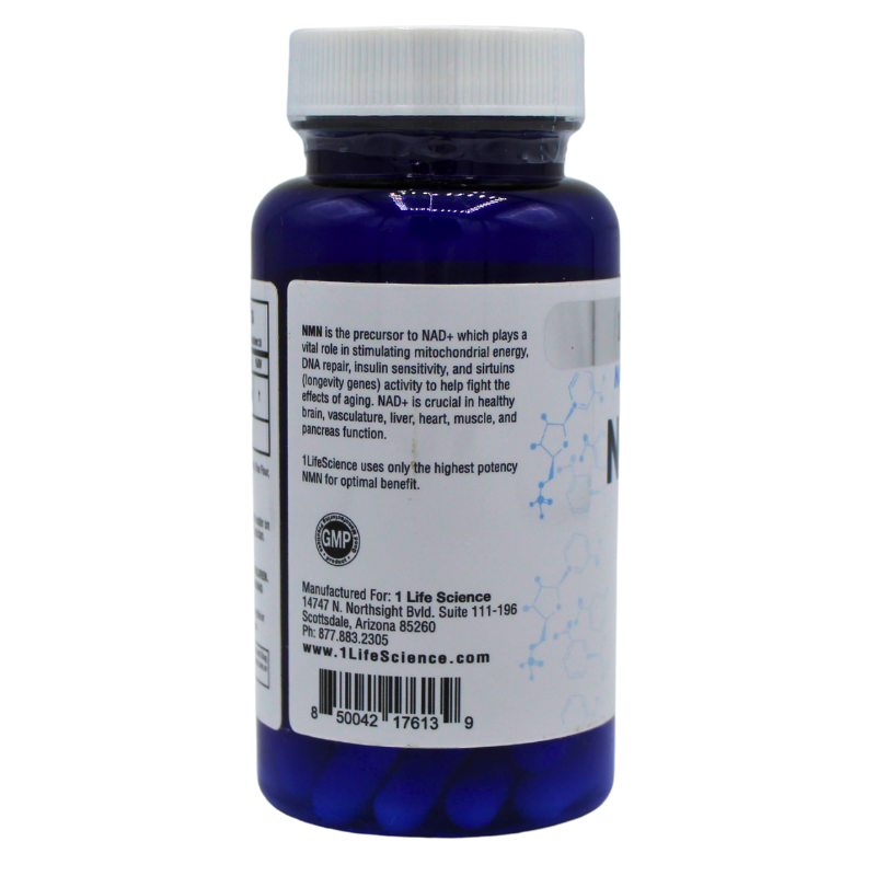 Maintaining healthy NAD+ levels is crucial for supporting cellular energy, cellular and DNA repair, and Sirtuin (longevity genes) activity to fight the effects of aging. NAD+ is crucial in healthy brain, vasculature, liver, heart, muscle and pancreas function. Direct supplementation of NAD+ is largely ineffective at increasing NAD+ levels. NMN is the precursor to NAD+ and is readily converted to NAD+. 1 Life Science uses only the highest potency NMN for optimal benefit.